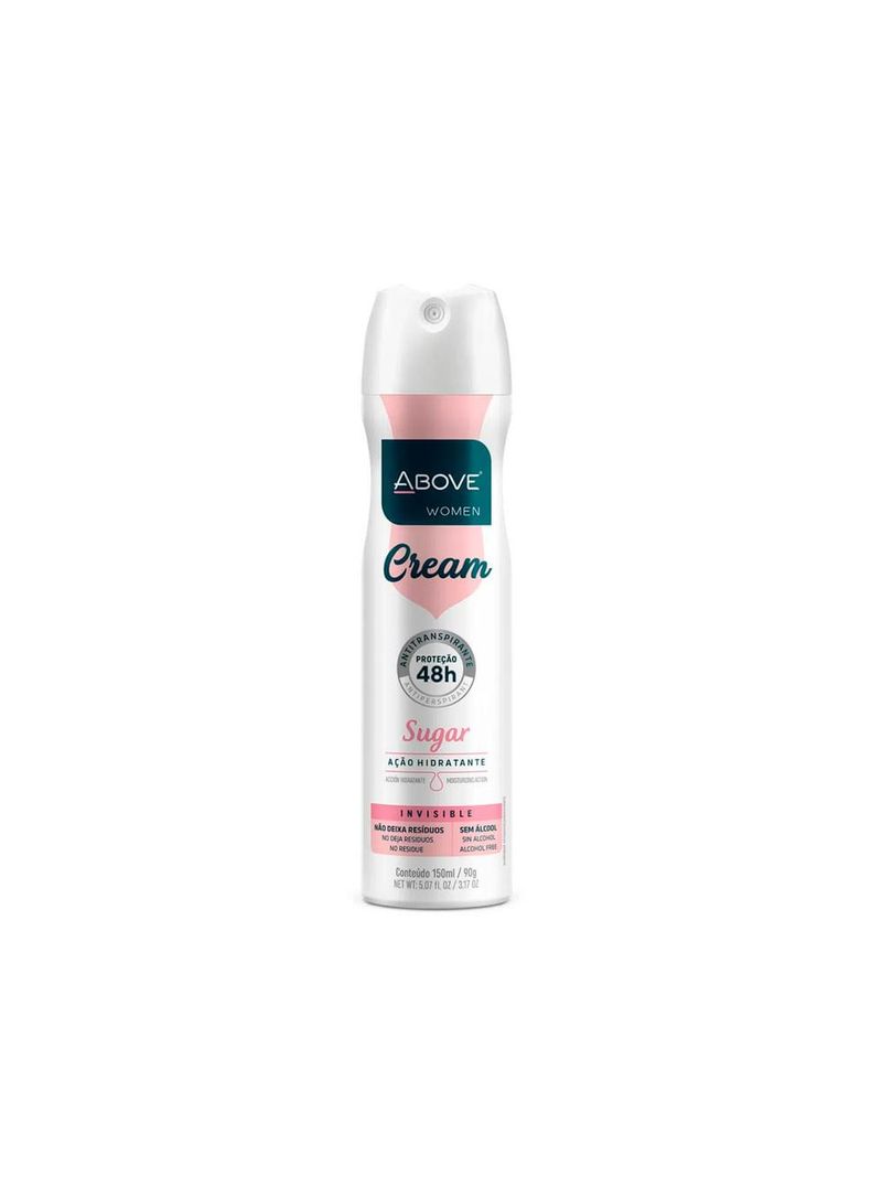 O Above Women Cream Sugar é um desodorante aerossol feminino formulado com Bio Elixir que, além de oferecer 48 horas de proteção contra suor e mau odor, também protege a sua roupa, evitando a formação de resíduos e manchas em diversos tipos de tecidos. Desenvolvido especialmente para mulheres, sua fórmula é dermatologicamente testada, livre de álcool e triclosan. Possui jato seco e ação hidratante, que ajudam a proporcionar conforto máximo com proteção duradoura. E o seu diferencial está na sua essência floral frutal que traz notas de lírio do vale, rosa e marshmallow que envolvem e protegem seu corpo de maneira discreta e confortável.