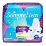 Sempre livre adapt plus o tem capacidade de proteção muito maior, se ajusta à qualquer posição e protege por até 10 horas.É ideal para as mulheres que buscam uma noite de sono confortável com proteçãoCom abas para melhor fixação e cobertura seca para mais proteçãoAté 100% de proteção contra vazamentos! o exclusivo formato adapt plus foi criado para se adaptar às curvas e não sair do lugar