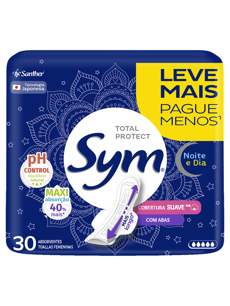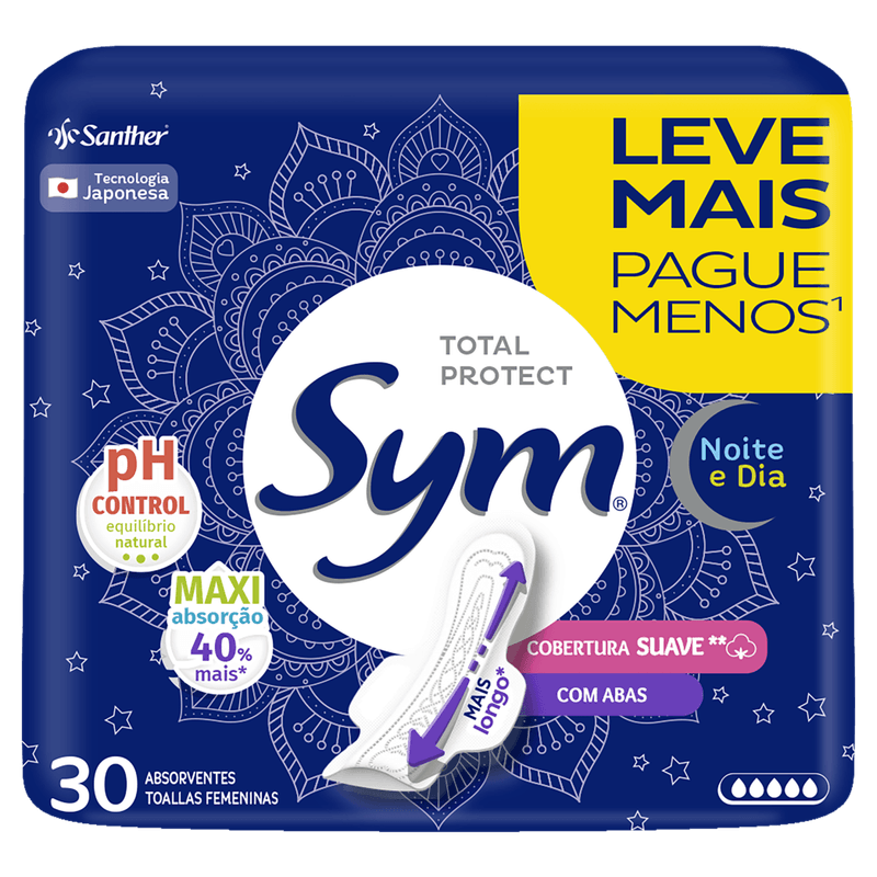 Absorvente Sym Noite Cobertura Suave Com Abas 30 Unidades
