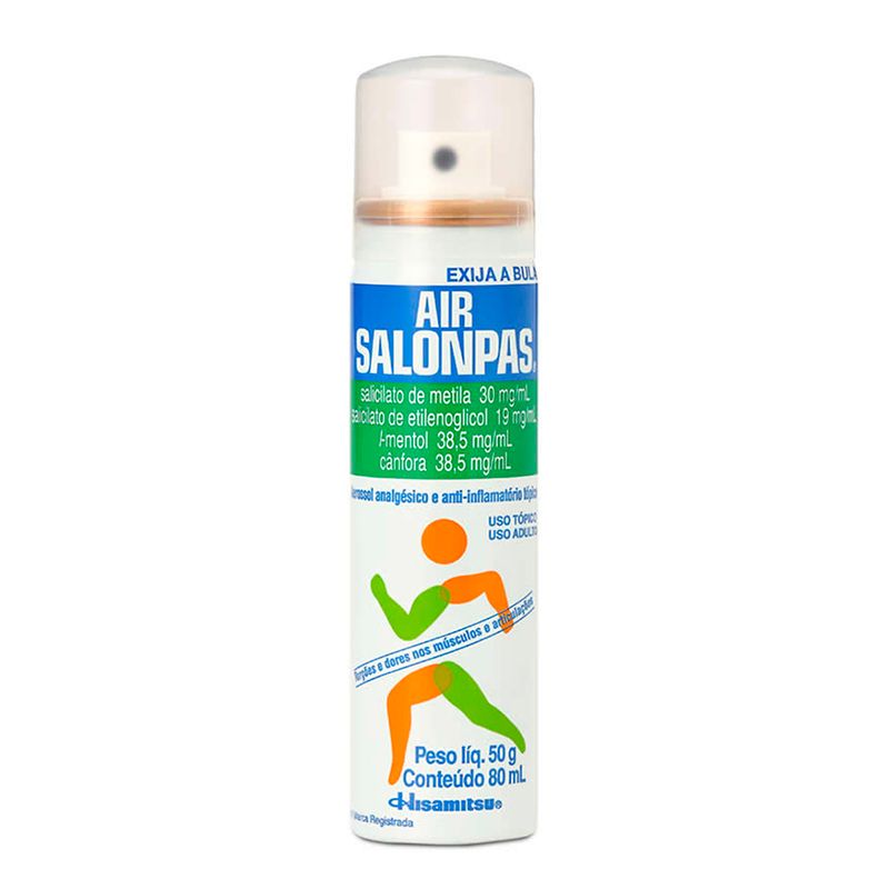 Este medicamento é indicado para alívio de dores e inflamações nas seguintes condições: Fadiga muscular, dores musculares e lombares, rigidez nos ombros, contusões, pancadas, torções, entorses, torcicolo, dores nas costas, nevralgia e dores articulares. Air Salonpas também pode ser utilizado para tratar outras condições determinadas por um médico. Air Salonpas é um analgésico, anti-inflamatório de uso tópico, que age sobre a região afetada, aliviando a dor e o inchaço. Lave e seque a área afetada. Agite vigorosamente o tubo e aplique o Air Salonpas no mínimo a 10cm de distância da pele de 3 a 4 vezes ao dia. Não aplique no mesmo local por mais de 3 segundos. No momento de usar, evite inalação e proteja os olhos durante a aplicação. Siga corretamente o modo de usar. Em caso de dúvidas sobre este medicamento, procure orientação do farmacêutico. Não desaparecendo os sintomas, procure orientação de seu médico ou cirurgião-dentista.