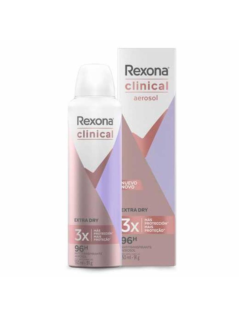 O Desodorante Feminino Rexona Clinical Aerosol 150ml proporciona 3X mais proteção que um antitranspirante comum. Com a inovadora fórmula termo-ativa e exclusiva tecnologia Defense+, se adapta ao organismo, ajudando a prevenir a transpiração e o mau odor.