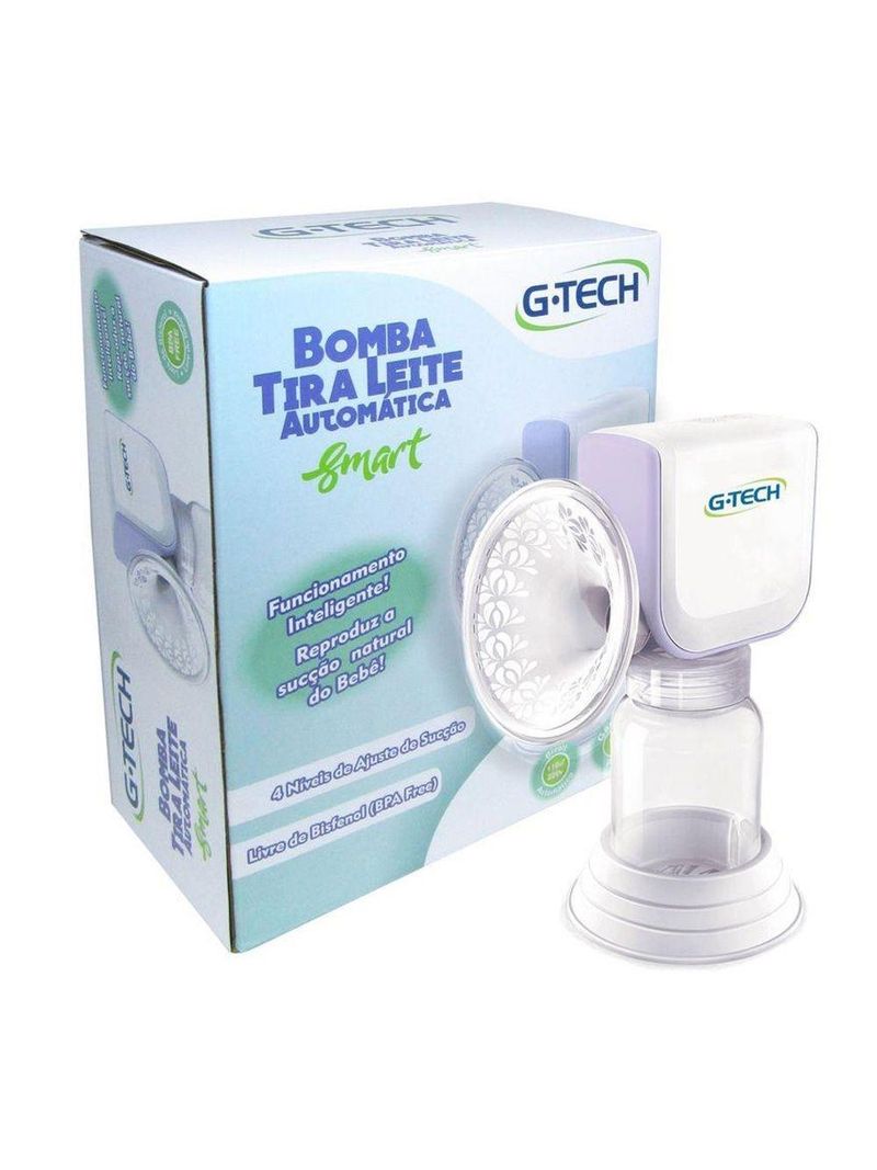 As bombas tira-leite materno da g-tech são ideais para as mães que procuram uma solução simples e confortável para auxiliar a retirada de leite materno. desenvolvida com materiais de excelente qualidade e alta performance, permitem uma retirada de leite satisfatória, sem causar dor ou incômodo à lactante. a bomba tira leite automática g-tech smart foi projetada para auxiliar as mães a extraírem o leite materno com maior conforto e conveniência. ela é leve, portátil e de simples montagem, basta ligar na tomada para usar a qualquer momento. o sistema inteligente g-tech smart, que simula a sucção natural do bebê, oferece maior conforto na extração e estimula a produção natural de leite da mãe. os quatro níveis de ajuste de intensidade permitem uma melhor adaptação e controle durante o uso. mais informações sobre o produto: 4 níveis de ajuste de sucção capa de silicone para proteger o seio livre de bisfenol (bpa) bivolt automático recomendações: antes de utilizar a bomba tira leite automática g-tech modelo smart, certifique-se de que todos os componentes (exceto a unidade do motor) estejam limpos e tenham sido esterilizados. a esterilização pode ser feita utilizando o esterilizador a vapor.