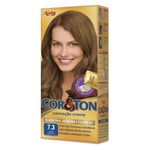 A Tintura Cor & Ton Mini Kit 7.3 Louro Dourado garante uma perfeita cobertura dos fios brancos e ainda oferece variadas nuances de cores, para escolher a que mais combina com você. A Cor & Ton está sempre buscando o melhor para os seus cabelos. E é por isso que a nova bisnaga traz o tratamento fixa cor para cuidar dos seus cabelos como eles merecem. Com exclusiva fórmula hidratante, ela garante cor mais rica, brilhante e duradoura.