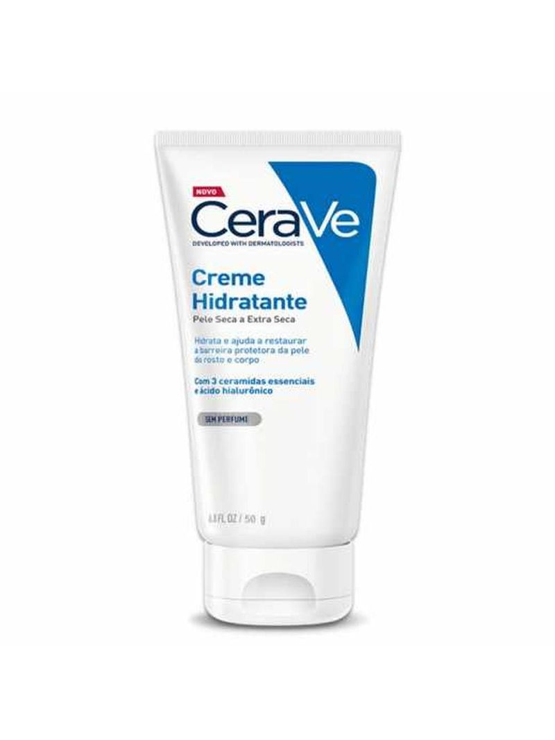 CeraVe CREME HIDRATANTE 50GDesenvolvido com dermatologistas*, CeraVe Creme Hidratante 50g hidrata e ajuda a restaurar a barreira protetora da pele. Esta fórmula rica e não oleosa contém as 3 ceramidas essenciais para a pele + ácido hialurônico, promovendo hidratação o dia todo através de sua exclusiva tecnologia MVE, de liberação prolongada de ativos hidratantes. Indicado para pessoas com pele seca a extra seca, sua textura é cremosa e de rápida absorção para uma sensação suave na pele. - Textura Cremosa - Ajuda a restaurar e manter a proteção da barreira natural da pele.- Liberação prolongada de ativos para uma hidratação que dura o dia todo.- Ajuda a reter a hidratação natural da pele.- Suave na pele: Fórmula de rápida absorção- Não obstrui os poros.- Sem perfume.*Produto foi desenvolvido com base em informações e necessidades indicadas por dermatologistas.Uma barreira cutânea comprometida pode levar ao ressecamento e à coceira - e agravar doenças da pele como eczema e psoríase. Um creme hidratante pode ajudar a reforçar a barreira da pele com ingredientes hidratantes, como o ácido hialurônico, ou um creme de ceramida que repõe os componentes essenciais da barreira da pele.O Creme Hidratante CeraVe atua tanto na hidratação efetiva quanto na restauração da barreira protetora da pele. Desenvolvido com dermatologistas e ideal para peles secas e muito, este creme hidratante rico, não oleoso e de absorção rápida, apresenta a patenteada Tecnologia de Liberação MVE para liberar um fluxo constante de ácido hialurônico e três ceramidas essenciais ao longo do dia e da noite. Indicado para peles sensíveis, este creme de ceramida livre de óleo e sem perfume também ajuda a pele a manter a hidratação enquanto melhora a sua aparência.Adequado para pele seca e muito seca no rosto e corpoTecnologia MVE: Este sistema de liberação patenteado libera continuamente ingredientes hidratantes para uma hidratação 24 horasCeramidas: Essenciais para uma pele saudável, as ceramidas ajudam a restaurar e manter a barreira natural da peleÁcido hialurônico: Este ingrediente atrai hidratação para a superfície da pele e ajuda a pele a reter a umidadeNão comedogênico, livre de óleo, hipoalergênico, sem fragrância e adequado para peles sensíveisDesenvolvido com dermatologistasRecomendações de Uso:Aplique generosamente sempre que necessário. Não aplicar ao redor dos olhos. Em caso de contato com os olhos, enxaguar completamente de imediato.Condições da pelePele seca a extraseca