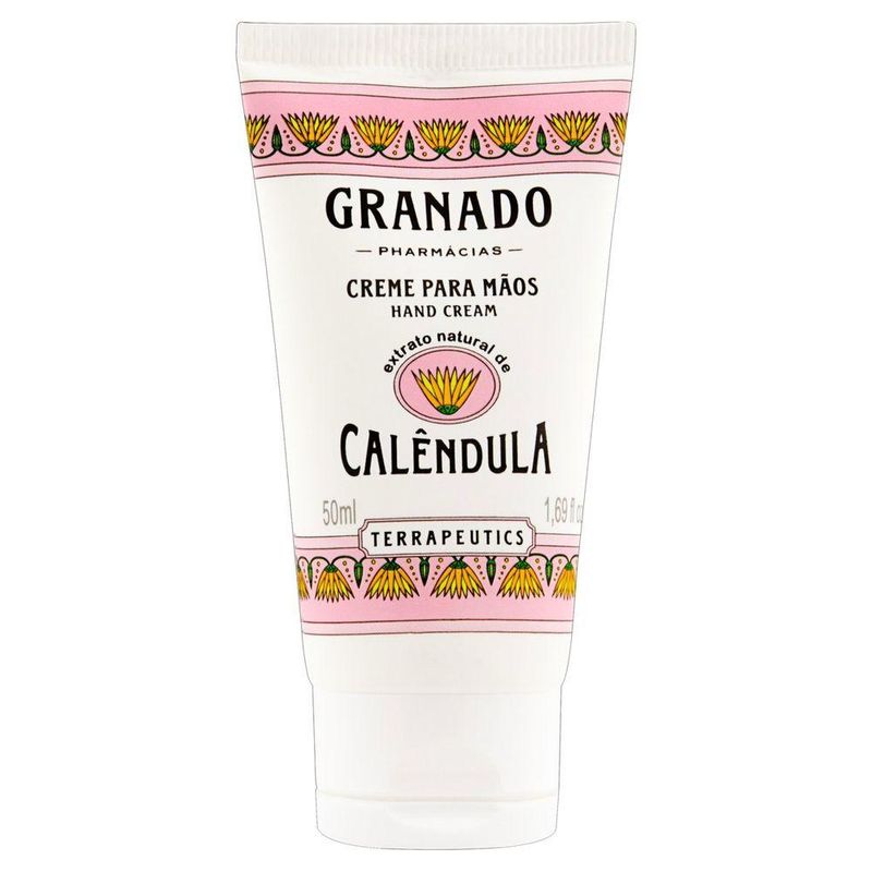 Granado terrapeutics creme para mãos calêluda 50ml enriquecido com óleos naturais de açaí, arroz e maracujá, que possuem propriedades antioxidante, protetora e nutritiva da pele o extrato natural de calêndula acalma a pele fórmula de rápida absorção produto com base vegetal, sem corantes e sem parabenos não contém ingredientes de origem animal.