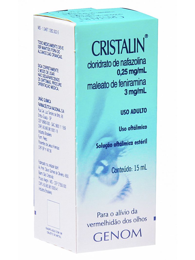 O cristalin é indicado para o alívio da vermelhidão dos olhos causada por poluição, fumaça, pó, pelos de animais, pólen, grama, caspa, bem como os sintomas leves de coceira. Se persistirem os sintomas, o médico deverá ser consultado. Cristalin é um medicamento. Seu uso pode trazer riscos. Procure o médico e o farmacêutico. Leia a bula.