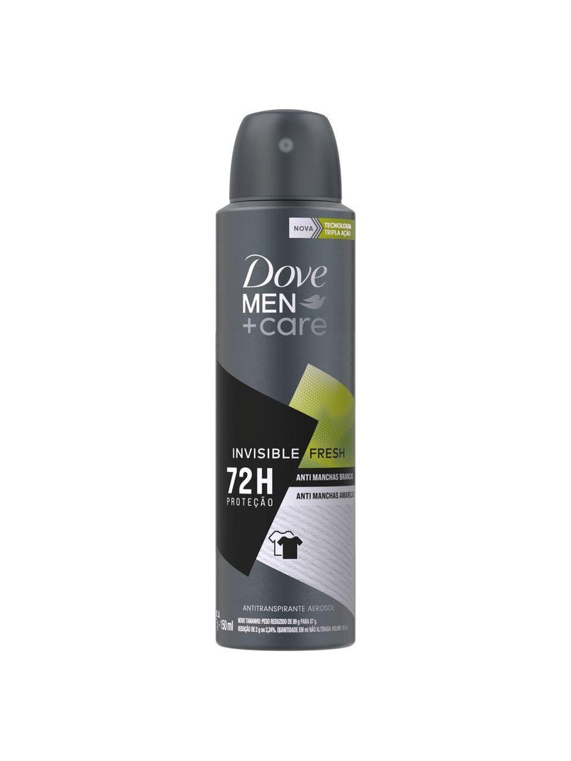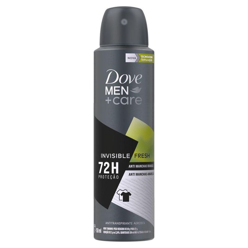 Dove Men+Care Invisible Fresh é um antitranspirante em formato aerosol que oferece até 72 horas de proteção contra o suor e o mau odor. Com 1/4 de creme hidratante, ele oferece uma nova tecnologia tripla ação e evita as manchas brancas e amarelas nas roupas. Além disso, este antitranspirante foi feito com embalagem de material reciclável, é inofensivo para a camada de ozônio e não testado em animais. Benefícios e diferenciais do antitranspirante Dove Men+Care Invisible Fresh 72h 72 horas de proteção. Antimanchas brancas e amarelas. Nova tecnologia tripla ação. Protege contra o suor e o mau odor. 1/4 de creme hidratante. Embalagem feita com material reciclável. Inofensivo para a camada de ozônio. Não testado em animais. Como usar o desodorante Dove Men+Care Invisible Fresh 72h? Utilizar em locais bem ventilados. Aplique somente nas axilas a uma distância de 15cm. Advertências Não pulverizar perto do fogo ou superfícies quentes. Não expor ao sol nem a temperaturas superiores a 50ºC. Conteúdo sob pressão. Pode explodir se aquecido. Não perfurar, não reutilizar e nem incinerar a embalagem. Proteger os olhos durante a aplicação. Evite a inalação deste produto. Não aplicar nas partes íntimas. Não aplicar sobre a pele úmida. Não usar se a pele estiver irritada ou lesionada. Caso ocorra alergia, irritação e/ou prurido no local da aplicação, suspenda o uso imediatamente e procure orientação médica Mantenha fora do alcance de crianças.
