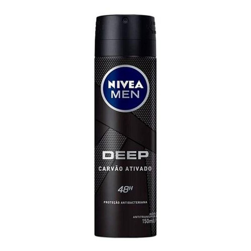 NIVEA MEN DEEP Antitranspirante protege a pele do suor e das bactérias durante 48hrs, proporcionando uma sensação duradoura de pele limpa e seca, exatamente como após o banho. Sua fórmula eficaz com Carvão Ativado atua poderosamente contra bactérias e proporciona uma fragrância moderna e masculina. - O poder do carvão ativado em uma fragrância masculina de longa duração