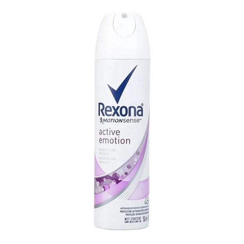Desodorante aerosol rexona feminino active emotion 150ml o desodorante rexona aerosol feminino emotion 90 g foi desenvolvido com o objetivo de garantir a proteção da pele e proporcionar frescor por muito mais tempo. Com aplicação aerosol, sua pele ficará seca, sem aquela sensação de humidade causada pelos desodorantes tradicionais. Possui em sua composição microcápsulas especiais que se depositam na superfície da pele e liberam proteção antitranspirante ativada.