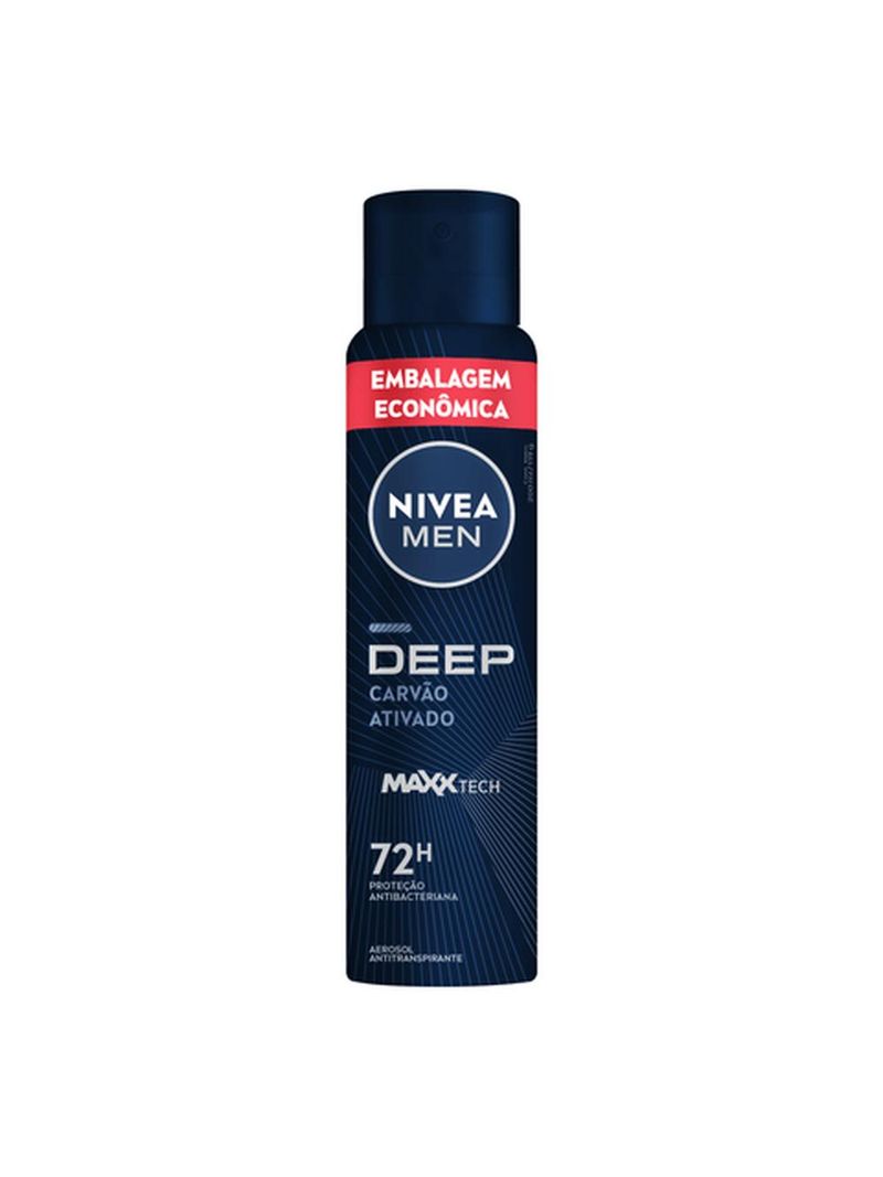 Kit 02 Desodorante Deep Carvão Ativado 200ml 72h - Nivea O Nivea Men Antitranspirante Aerossol Deep Carvão Ativado proporciona 72 horas de proteção intensa contra suor e mau odor. Sua fórmula exclusiva, com carvão ativado, combate as bactérias responsáveis pelo mau cheiro, reduzindo-as em até 99,9%. A fragrância duradoura e única deixa você com uma sensação de frescor contínuo, enquanto a pele das axilas permanece limpa e seca. Além disso, a embalagem econômica e a secagem rápida tornam o uso ainda mais prático para o dia a dia. Dermatologicamente testado, o Nivea Men Deep Carvão Ativado é a escolha ideal para quem busca uma proteção poderosa e duradoura sem abrir mão de um toque refrescante. Experimente e sinta-se protegido a todo momento. ATENÇÃO:*Usar somente nas axilas. *Não usar se a pele estiver irritada ou lesionada. *Caso ocorra irritação e/ou prurido no local da aplicação, suspender o uso imediatamente e procurar orientação médica. Imagens Meramente Ilustrativas. Todas as Informações Divulgadas são de Responsabilidade Exclusiva do Fabricante/fornecedor.