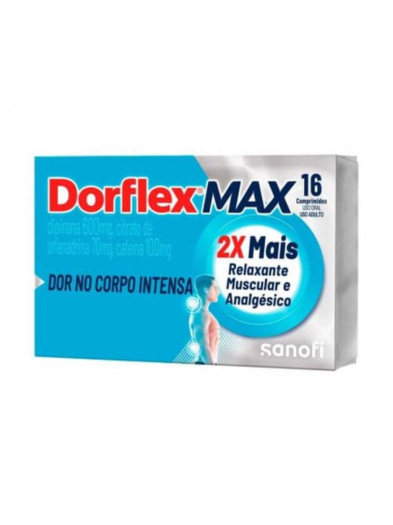 Dorflex Max é indicado no alívio da dor associada a contraturas musculares, incluindo dor de cabeça tensional. Como usar o Dorflex Max? Você deve tomar os comprimidos com líquido (aproximadamente ½ a 1 copo), por via oral. Posologia: 1 comprimido, 3 a 4 vezes ao dia. Não ultrapassar estes limites. Não há estudos dos efeitos de Dorflex Max administrado por vias não recomendadas. Portanto, por segurança e para eficácia deste medicamento, a administração deve ser somente pela via oral.