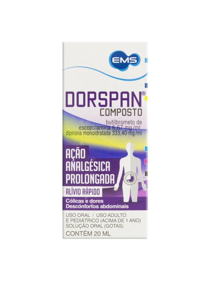 registro ms: 1023502250172;dorspan composto gotas 20ml ems é um medicamento. Seu uso pode trazer riscos. Procure o médico e o farmacêutico. Leia a bula.