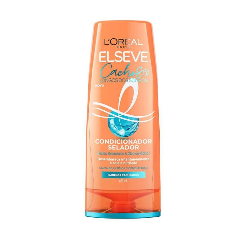 O Condicionador Selador Elseve Cachos Longos Dos Sonhos desembaraça instantaneamente os fios e preenche o cabelo com nutrição profunda até as pontas, para cachos mais longos, fortes e definidos desde o primeiro uso.Com nosso poderoso coquetel que contém ácido hialurônico e óleo de rícino, nossa fórmula trata e sela os cachos, salvando os últimos 3 cm dos seus cachos.