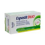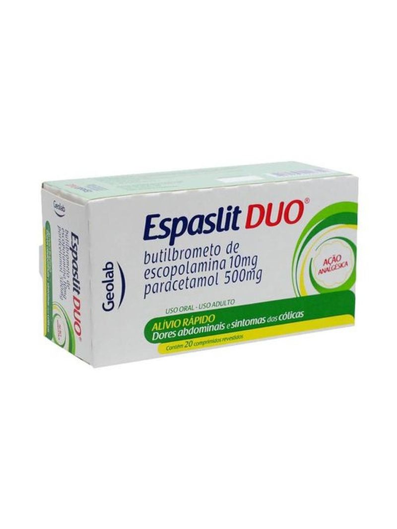 Espaslit Duo deve ser tomado por via oral com quantidade suficiente de água. A dose recomendada para adultos é de 1 a 2 comprimidos três vezes ao dia. A dose diária não deve ultrapassar 6 comprimidos. Não usar por mais de 3 dias, a não ser sob orientação médica. Este medicamento não deve ser partido, aberto ou mastigado. Siga corretamente o modo de usar. Em caso de dúvidas sobre este medicamento, procure orientação do farmacêutico. Não desaparecendo os sintomas, procure orientação de seu médico ou cirurgião-dentista. O que devo fazer quando eu me esquecer de usar o Espaslit Duo? Espaslit Duo é normalmente usado conforme a necessidade. Se você usa Espaslit Duo regularmente e se esquecer de alguma dose, continue tomando as próximas doses regularmente no horário habitual. Não duplique a dose na próxima tomada. Em caso de dúvidas, procure orientação do farmacêutico ou de seu médico, ou de cirurgião-dentista. Cada comprimido revestido contém: Butilbrometo de escopolamina 10mg* Paracetamol 500mg *Equivalente à 6,89mg de escopolamina. Excipientes: amido, amido pré-gelatinizado, amidoglicolato de sódio, povidona, ácido esteárico, etilparabeno, propilparabeno, celulose microcristalina, dióxido de silício, estearato de magnésio, crospovidona, hipromelose, macrogol, dióxido de titânio e álcool etílico. Apresentação do Espaslit Duo Comprimido revestido de 10mg + 500mg: Embalagens contendo 20 ou 120* comprimidos. *Embalagem múltipla. Uso oral. Uso adulto. Espaslit Duo deve ser mantido em temperatura ambiente (15ºC a 30ºC), protegido da luz e umidade. Número de lote e datas de fabricação e validade: vide embalagem. Não use medicamento com o prazo de validade vencido. Guarde-o em sua embalagem original. Características físicas e organolépticas Espaslit Duo apresenta-se na forma de comprimido revestido oblongo semiabaulado com vinco e coloração branca. Antes de usar, observe o aspecto do medicamento. Caso ele esteja no prazo de validade e você observe alguma mudança no aspecto, consulte o farmacêutico para saber se poderá utilizá-lo. Todo medicamento deve ser mantido fora do alcance das crianças.