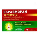 Para o que é indicado? Espasmopan Composto é indicado para o tratamento dos sintomas de cólicas intestinais, estomacais, urinárias, das vias biliares, dos órgãos sexuais femininos e menstruais. Como funciona? Espasmopan Composto tem ação antiespasmódica, agindo sobre as contrações dolorosas e aliviando de forma rápida e prolongada as cólicas, dores e desconfortos abdominais. Possui também importante propriedade analgésica, o que faz com que diminua a percepção da dor. O medicamento faz efeito logo depois de tomado e seu efeito dura por 6 a 8 horas. Contraindicações: Você não deve usar Espasmopan Composto se tiver alergia a analgésicos semelhantes à dipirona (como isopropilaminofenazona, propifenazona, fenazona, fenilbutazona), ao butilbrometo de escopolamina ou a algum outro componente do produto. Isto inclui, por exemplo, o desenvolvimento de agranulocitose (febre, dor de garganta ou alteração da boca e garganta, associados à ausência ou diminuição de células brancas no sangue) após o uso destas substâncias. O uso também não é indicado se tiver asma induzida por analgésicos, ou se desenvolver reações anafilactoides (manifestações na pele e inchaço dos lábios, língua e garganta) ou broncoespasmo (estreitamento das vias respiratórias) após tomar analgésicos (como paracetamol, salicilatos, diclofenaco, ibuprofeno, indometacina ou naproxeno). Você também não deve usar Espasmopan Composto se tiver comprometimento da medula óssea (ex.: após algum tratamento medicamentoso com agentes citostáticos, que inibem o crescimento ou a reprodução das células) ou comprometimento no sistema formador de elementos do sangue; deficiência genética da enzima glicose-6-fosfato-desidrogenase, tendo risco aumentado de alterações do sangue; porfiria hepática aguda intermitente (doença do metabolismo do sangue que provoca alterações na pele e sistema nervoso); glaucoma (aumento da pressão dentro do olho); aumento da próstata com dificuldade para urinar; estreitamento da passagem do conteúdo no estômago e intestinos; íleo paralítico ou obstrutivo (não funcionamento do intestino); megacólon (dilatação da parte final dos intestinos); taquicardia (batimentos cardíacos acelerados); miastenia gravis (doença que provoca fraqueza muscular), se estiver no terceiro trimestre de gravidez ou amamentando. Espasmopan Composto é contraindicado a partir dos 6 meses de gravidez. Este medicamento não deve ser utilizado por mulheres grávidas sem orientação médica. Informe imediatamente seu médico em caso de suspeita de gravidez.