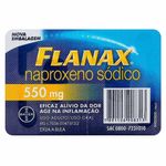 Flanax é um anti-inflamatório (reduz a inflamação) com ação analgésica (alivia a dor) e antitérmica (reduz a febre). Age rapidamente, iniciando sua ação 20 minutos após a ingestão do medicamento. Flanax deve ser administrado em jejum ou com as refeições. O comprimido deve ser ingerido com um pouco de líquido, sem mastigar. A absorção pode ser retardada com alimentos. Dosagem Comprimidos revestidos de 275 mg: tomar 1comprimido 1 a 2 vezes por dia ou a critério médico. Comprimidos revestidos de 550 mg: tomar 1comprimido 1 vez por dia ou a critério médico. A dose diária (24 horas) de 550 mg não deve ser excedida, salvo prescrição médica. Crianças menores de 12 anos não devem tomar este produto, salvo sob orientação médica. Devem ser consideradas doses mais baixas nos idosos, em pacientes com grave insuficiência hepática, renal e/ ou cardíaca. Duração do tratamento Flanax deve ser utilizado na dose recomendada pelo menor tempo necessário para controlar os sintomas. Não é recomendado o uso de Flanax por mais de 10 dias consecutivos, a não ser sob orientação médica. Se a dor ou a febre persistirem ou se os sintomas mudarem, o médico deverá ser consultado. Siga corretamente o modo de usar. Em caso de dúvidas sobre este medicamento, procure orientação do farmacêutico. Não desaparecendo os sintomas, procure orientação de seu médico ou cirurgião-dentista. Este medicamento não deve ser partido ou mastigado. Cada comprimido revestido de Flanax 275 mg contém: 275 mg (equivalente a 250 mg de naproxeno) de naproxeno sódico. Excipientes: celulose microcristalina, povidona, estearato de magnésio, hipromelose, dióxido de titânio, macrogol, laca azul, talco e água purificada. Cada comprimido revestido de Flanax 550 mg contém: 550 mg (equivalente a 500 mg de naproxeno) de naproxeno sódico. Excipientes: celulose microcristalina, povidona, estearato de magnésio, hipromelose, dióxido de titânio, macrogol, laca azul, talco e água purificada. Conservar em temperatura ambiente (15ºC a 30ºC), protegido da luz e da umidade. Número de lote e datas de fabricação e validade: vide embalagem. Não use medicamento com o prazo de validade vencido. Guarde-o em sua embalagem original. Características do medicamento Flanax 275 mg O comprimido de Flanax 275 mg tem formato ovalado e coloração azulada. Flanax 550 mg O comprimido de Flanax 550 mg tem formato ovalado, coloração azulada e é sulcado em uma das faces. Antes de usar, observe o aspecto do medicamento. Caso ele esteja no prazo de validade e você observe alguma mudança no aspecto, consulte o farmacêutico para saber se poderá utilizá-lo. Todo medicamento deve ser mantido fora do alcance das crianças. Comprimido revestido Flanax 275 mg: Comprimidos revestidos contendo 275 mg de naproxeno sódico. Embalagens com 8 e 20 comprimidos revestidos e em blísteres com 2 comprimidos revestidos. Flanax 550 mg: Comprimidos revestidos contendo 550 mg de naproxeno sódico. Embalagens com 10 e 15 comprimidos revestidos e em blísteres com 2 comprimidos revestidos. Uso oral. Uso adulto.