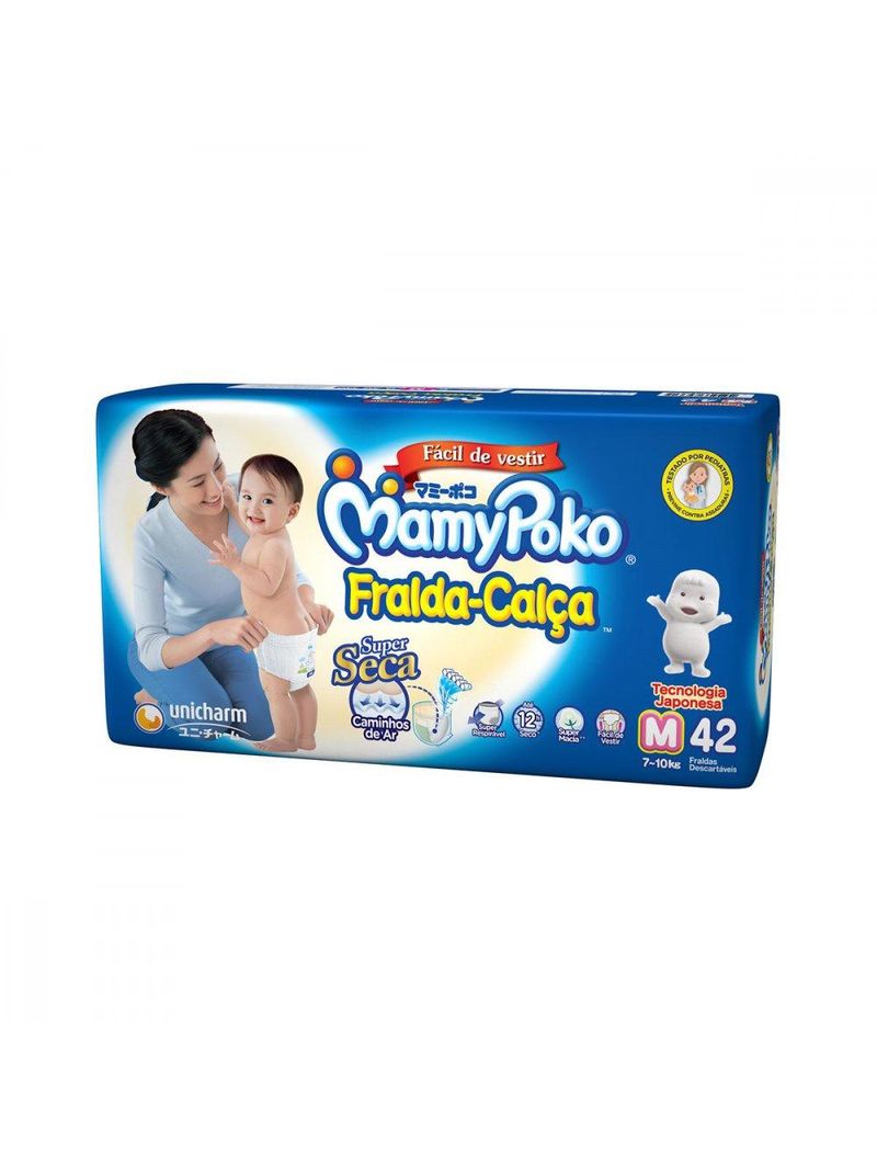 A MamyPoko Fralda-Calça, é uma mão na roda para todas as horas! É uma fralda prática, que veste como uma calcinha ou cuequinha. Assim, você consegue trocar o seu bebê em pé com muita rapidez. Ela ainda possui fitas adesivas que não desgrudam, poder de absorção que absorve um volume de líquidos equivalente a 5 copos e é superanatômica. Ideal para o bebê que não para de se mexer na hora de trocar a fralda.