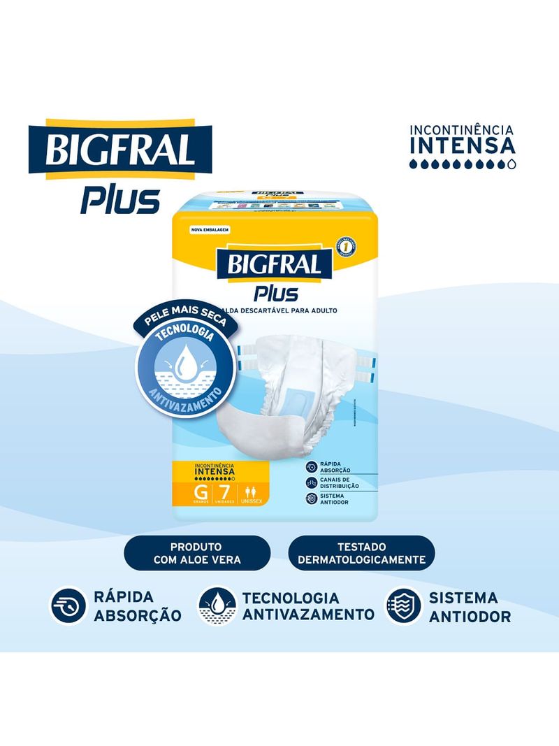 Com 7 unidades no tamanho G, a Bigfral Plus apresenta tecnologia Wet Block para absorção rápida, barreiras antivazamento que evitam acidentes e sistema antiodor que mantém a sensação de frescor durante todo o dia. Ideal para uso diário, garantindo liberdade de movimento e proteção contínua.