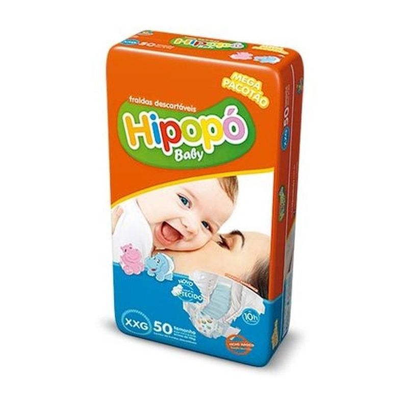 As Fraldas Hipopó Baby com toque de tecido e formato anatômico proporcionam maior conforto para o bebê, a superabsorção deixa seu bebê sequinho por até 10 horas, fecho mágico com velcro que abre e fecha quantas vezes quiser e dermatologicamente testada, garante a tranquilidade da mamãe e do papai.