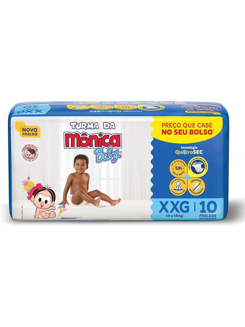 A Turma da Mônica Baby uniu proteção e conforto em uma nova opção de fralda, para garantir que seu bebê cresça feliz e tenha as melhores lembranças da sua infância. A Nova fralda Turma da Mônica Baby possui a nova Tecnologia QuatroSec para que ele fique calmo, tranquilo e seguro durante o dia e a noite toda. Conta com um exclusivo sistema de canais que distribui mais rápido o xixi, barreiras anti-vazamento e uma fina camada extra que ajuda a manter o bebê sequinho por até 12 horas, além de cintura elástica que proporciona um perfeito ajuste no corpinho.