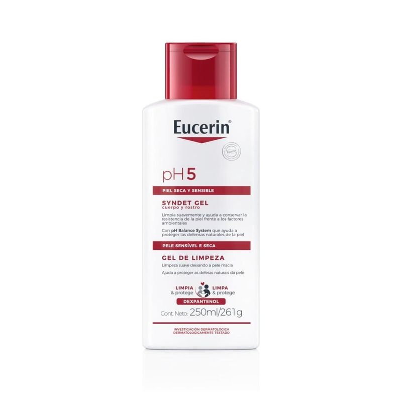 O que é e para que serve o Gel de Limpeza Eucerin pH5?O Eucerin pH5 é um gel de limpeza corporal e facial, que possui fórmula especial livre de sabão, com solução equilibrada de Citrato pH5 e agentes limpadores que reforçam o manto ácido protetor da pele. Indicado para todos os tipos de pele, principalmente as mais sensíveis e delicadas, seu uso diário, além de promover uma higienização profunda e extra suave, sem agredir, também ajuda a manter o equilíbrio natural da pele, protegendo e fortalecendo suas defesas naturais. O resultado é uma pele limpa, macia, hidratada e protegida. Como usar o Gel de Limpeza Eucerin pH5?Aplique o Gel de Limpeza Eucerin pH5 sobre a pele previamente umedecida e massageie suavemente até obter espuma. Para retirar, enxágue com água abundante. Benefícios e diferenciaisIndicado para todos os tipos de pele, principalmente as mais sensíveis e delicadas.Pode ser utilizado tanto no rosto quanto no corpo.Recomendado para uso diário.Conta com solução equilibrada de Citrato pH5 e agentes limpadores que reforçam o manto ácido protetor da pele.Promove uma higienização profunda e extra suave, sem agredir a pele.Ajuda a manter o equilíbrio natural da pele.Protege e fortalece suas defesas naturais.Mantém a pele limpa, macia, hidratada e protegida.Composição:Aqua, Sodium Cocoamphoacetate, Sodium Myreth Sulfate, Lauryl Glucoside, Citric Acid, Sodium Chloride, Methylpropanediol, Panthenol, Sodium Citrate, Polyquaternium-10, Coco-Glucoside, PEG-40 Hydrogenated Castor Oil, Glycol Distearate, Glycerin, PEG-200 Hydrogenated Glyceryl Palmate, Sodium Benzoate, Parfum AdvertênciasUso externo. Não usar em crianças.Não ingerir.Caso haja contato com os olhos, lave-os abundantemente. Se houver irritação, suspenda o uso imediatamente e procure orientação médica.Mantenha fora do alcance das crianças.