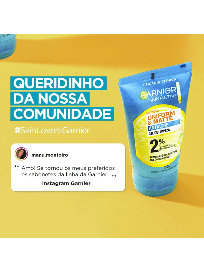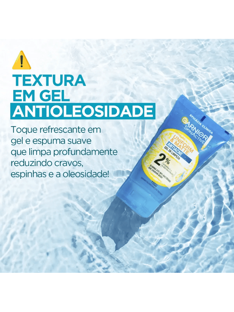 O Gel de Limpeza Facial Garnier Uniform & Matte Antiacne é indicado para peles oleosas ou com tendência a acne. Ele limpa profundamente a pele, removendo impurezas, excesso de oleosidade e prevenindo o surgimento de acne. Ideal para uso diário, deixa a pele mais uniforme, sem brilho excessivo e com um toque suave e sequinho.
