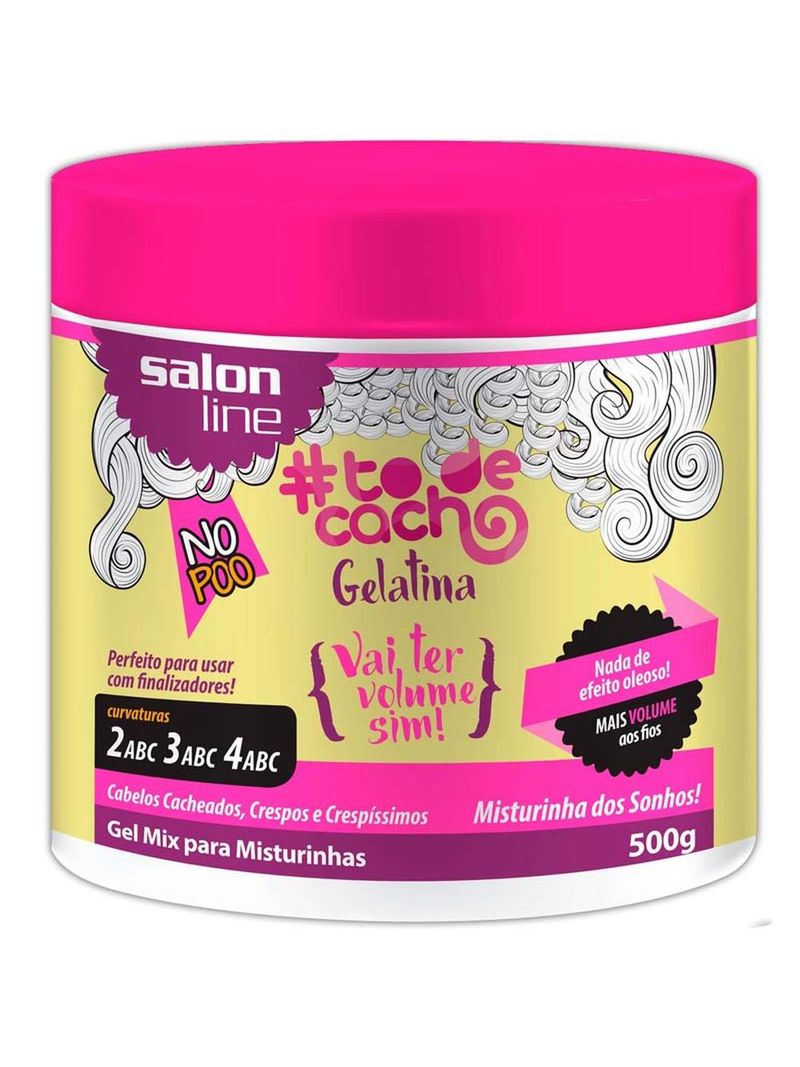 A Máscara de tratamento salon line gelatina #Todecachos vai ter volume sim, especialmente para as mulheres que buscam volumes e modularidade em seus cachos. Você e seus cabelos literalmente nas alturas, e o melhor sem aquele efeito umidificado. Gelatina #Todecachos deixa seus cachos hidratados com curvaturas 2ABC 3ABC 4ABC, sem adição de óleo deixando seus cachos ainda mais naturais e volumosos. Além de não ter a adição de sulfato parabenos e pretolato silicone, sua fórmula contém aloe Vera Ajuda a definir os cachos e Colágeno Retém a água e uniformiza as cutículas.