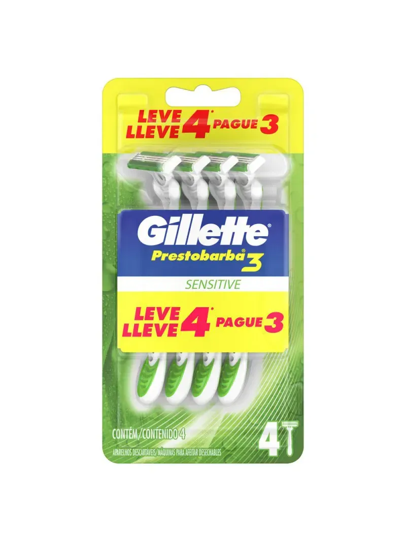 O Aparelho de Barbear Gillette Prestobarba 3 Sensitive Comfortgel é da linha descartável da Gillete e funciona para um barbear mais seguro, com proteção extra, especial para peles mais sensíveis, evitando irritação. Sua tecnologia Comfortgel permite até 10 barbeados mais suaves. Ela conta com 3 lâminas estruturadas em molas independentes, além de cabeça móvel que se ajusta mais facilmente aos contornos do rosto.