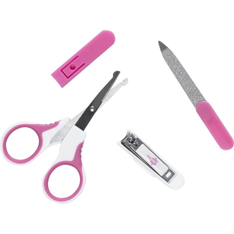 O kit manicure neopan foi desenvolvido especialmente para o cuidado completo com as unhas do bebê, evitando o acúmulo de sujeiras e machucados causados pelas unhas compridas. Contém uma tesoura de aço inoxidável com acabamento antideslizante, uma capa protetora de tesoura, um cortador de unha em aço, um suporte para o cortador de unha e uma lixa metálica com cabo plástico.