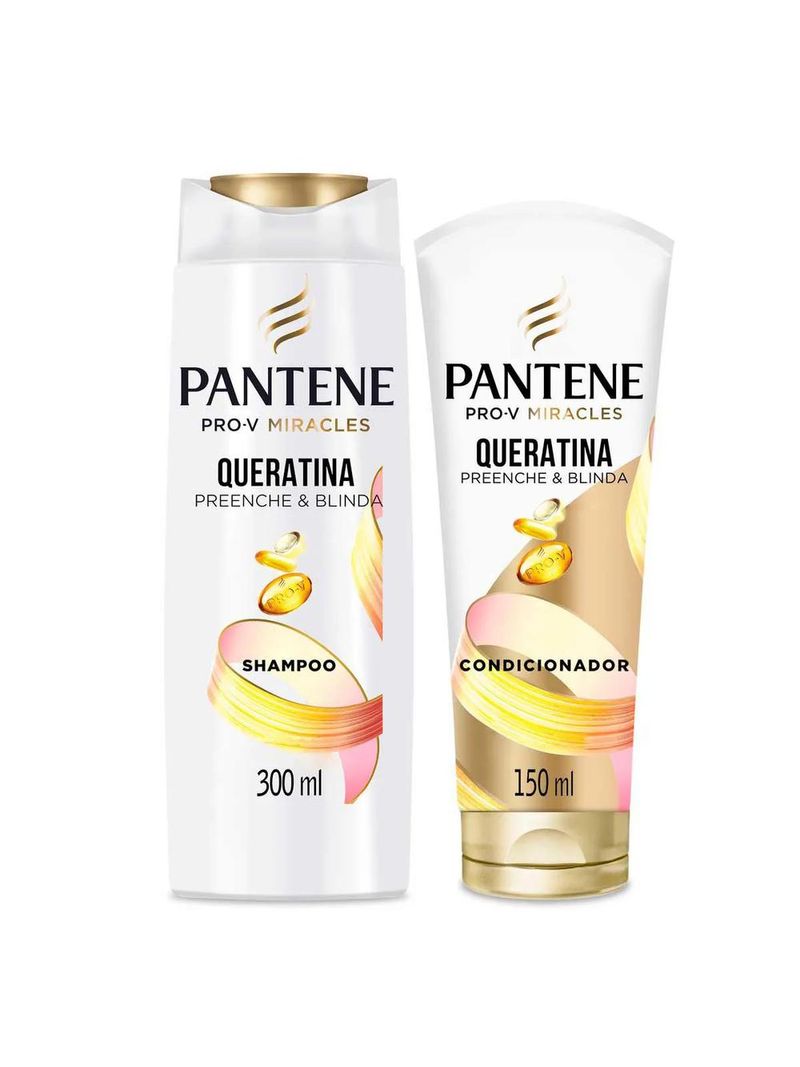 O que é o kit Pantene Queratina? Ideal para cabelos cabelos danificados pelo calor, a nova linha Pantene Queratina Preenche & Blinda contém fórmula Pro-V Miracles com Queratina e Pró-vitaminas B5 que faz uma reparação contra danos. Para que serve o kit Pantene Queratina? Neste kit Pantene Queratina Preenche & Blinda, o shampoo penetra no cabelo, fazendo uma limpeza e blindagem que protege; em seguida, o condicionador identifica e preenche os fios danificados, para alinhar e selar, facilitando o desembaraço. Sem pesar nos fios, a linha Pantene Queratina Preenche & Blinda proporciona cabelos mais resistentes e brilhantes. Benefícios e diferenciais do kit Pantene Queratina Limpeza e blindagem que protege seus cabelos. Alinha e sela os fios, facilitando o desembaraço. Repara contra danos causados até pelo calor. Cabelos mais resistentes e brilhantes. Contém Queratina e Pró-Vitaminas B5. Indicado para cabelos danificados pelo calor. Contém pH balanceado. Fórmula que não pesa. Como usar o kit Pantene Queratina? Aplique sobre o cabelo úmido. Massageie suavemente o couro cabeludo com a ponta dos dedos em movimentos circulares. Enxágue e repita se necessário. Use o shampoo e condicionador e a linha completa Preenche & Blinda para uma reparação completa contra danos. Advertências Uso externo. Não ingerir. Caso haja contato com os olhos, lave-os abundantemente. Se houver irritação, suspenda o uso imediatamente e procure orientação médica. Mantenha fora do alcance das crianças.