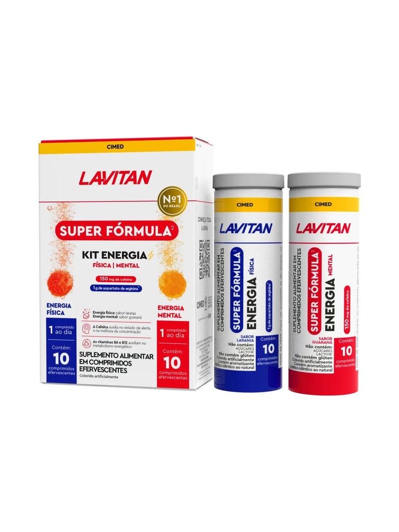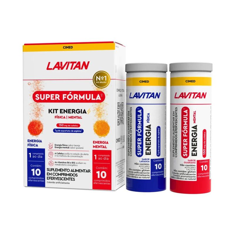 - 1 Lavitan Super Fórmula Energia Mental: 150mg de cafeína com 10 comprimidos efervescentes sabor tradicional de guaraná.