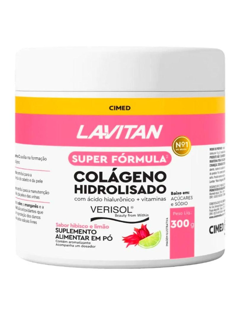 Lavitan Super Fórmula é um suplemento alimentar em pó sabor hibisco e limão, desenvolvido com ácido hialurônico, vitamina C, biotina, zinco e mix de vitaminas e minerais.