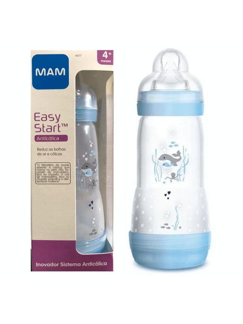 A mamadeira easy start 320 ml da mam possui bico de silicone simétrico com textura macia e sedosa e para fluxo rápido. Além disso, vem com tampa protetora anti vazamento que pode ser usada para medir pequenos volumes, abertura larga para facilitar a limpeza, base ventilada que proporciona um fluxo regular, com menos cólica e regurgitação. Recomendado para crianças acima de 4 meses de idade. * A mam desenvolveu e patenteou um bico simétrico de silicone ultra macio. Comprovadamente aceita por 94% das crianças* * menos cólicas e regurgitação graças à base ventilada que proporciona um fluxo regular sem interrupção. Menos cólica confirmado por 80% das mães * totalmente desmontável facilitando a limpeza * autoesterilizável em 3 minutos