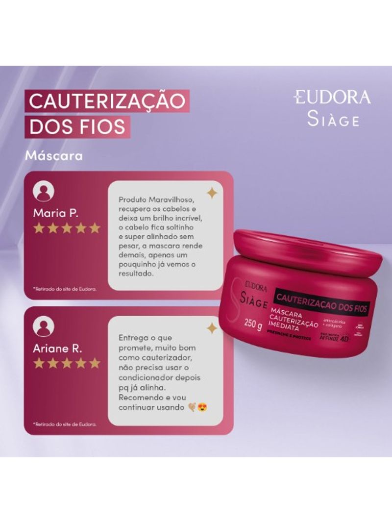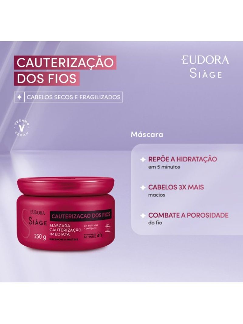 A Máscara Capilar Siàge Cauterização dos Fios repõe a hidratação em 5 minutos e garante selagem imediata das cutículas para cabelos 3x mais macios.