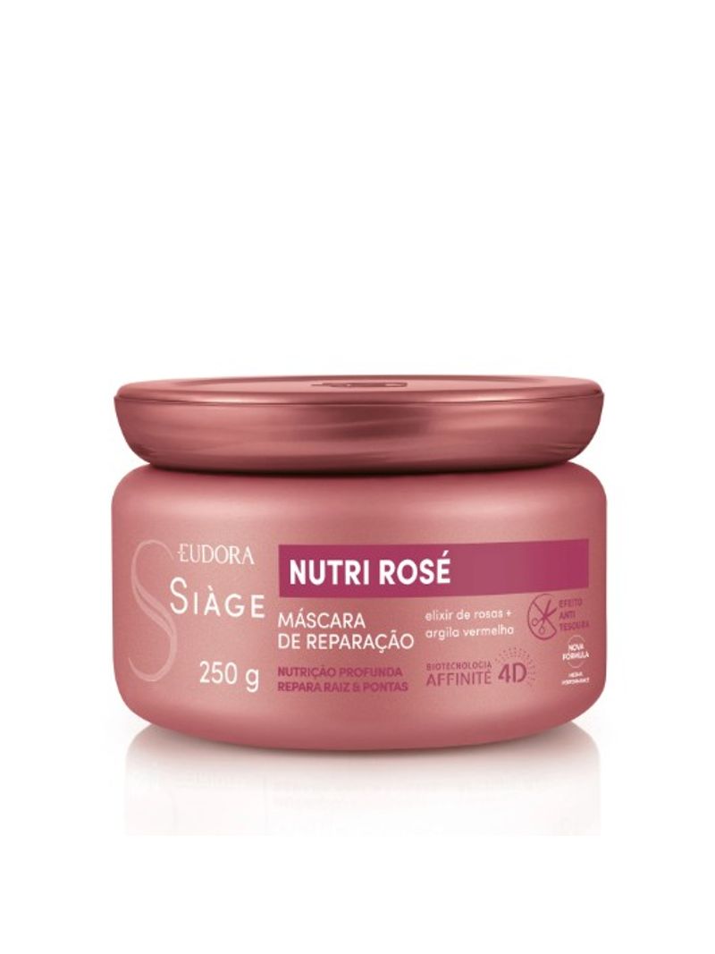 A linha Siàge Nutri Rosé é enriquecida com um poderoso Elixir de Rosas, rico em vitaminas e antioxidantes que nutrem os fios e tem alto poder de reparação, combinado a natural Argila Vermelha que nutre os fios, promovendo equilíbrio ao couro cabeludo e reparação profunda da raíz às pontas.