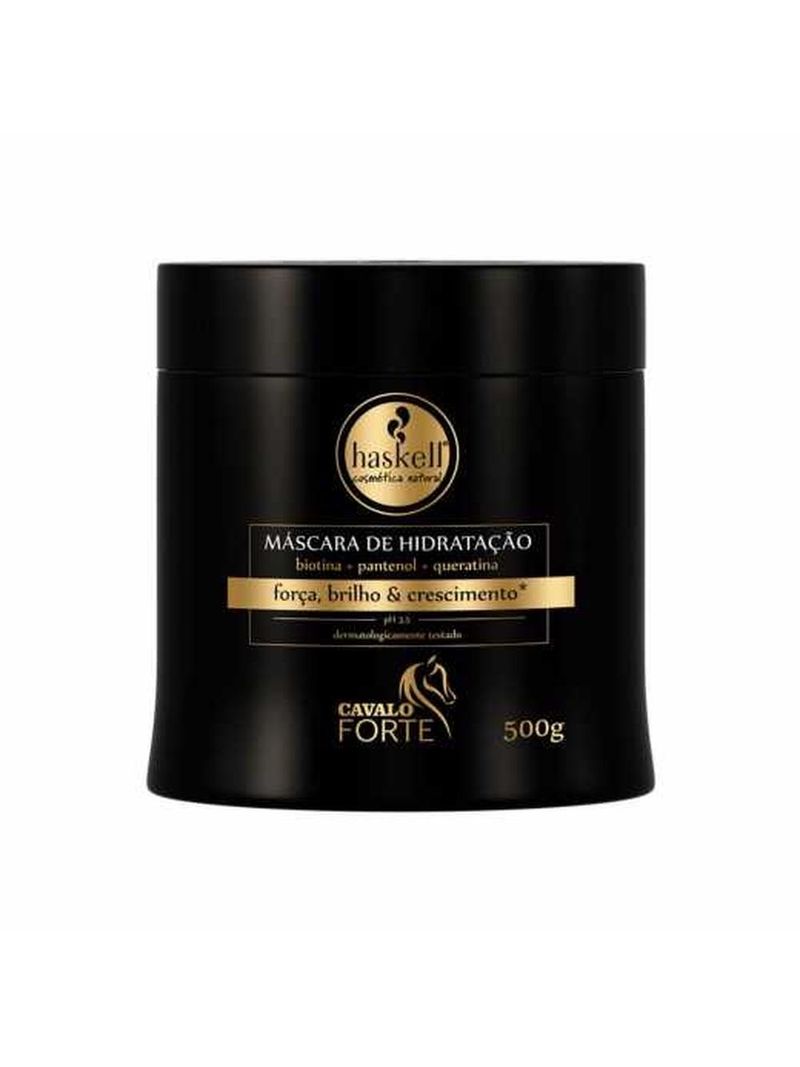 MÁSCARA DE HIDRATAÇÃO HASKELL CAVALO FORTE FORÇA,BRILHO & CRESCIMENTO Fortalecimento e auxílio no crescimento dos fios, além de promover brilho intenso. Este tratamento reduz o risco de quebra, reconstrói e reforça a estrutura interna do fio, promovendo reparação profunda, recuperando a força natural dos cabelos. Modo de Usar: Após lavar os cabelos, aplique a Máscara de Hidratação Cavalo Forte mecha por mecha do comprimento as pontas. Massageie e deixe agir por 15 minutos. Se preferir faça uso de touca térmica ou de alumínio. Enxágue em seguida, retirando todo resíduo de creme dos cabelos.