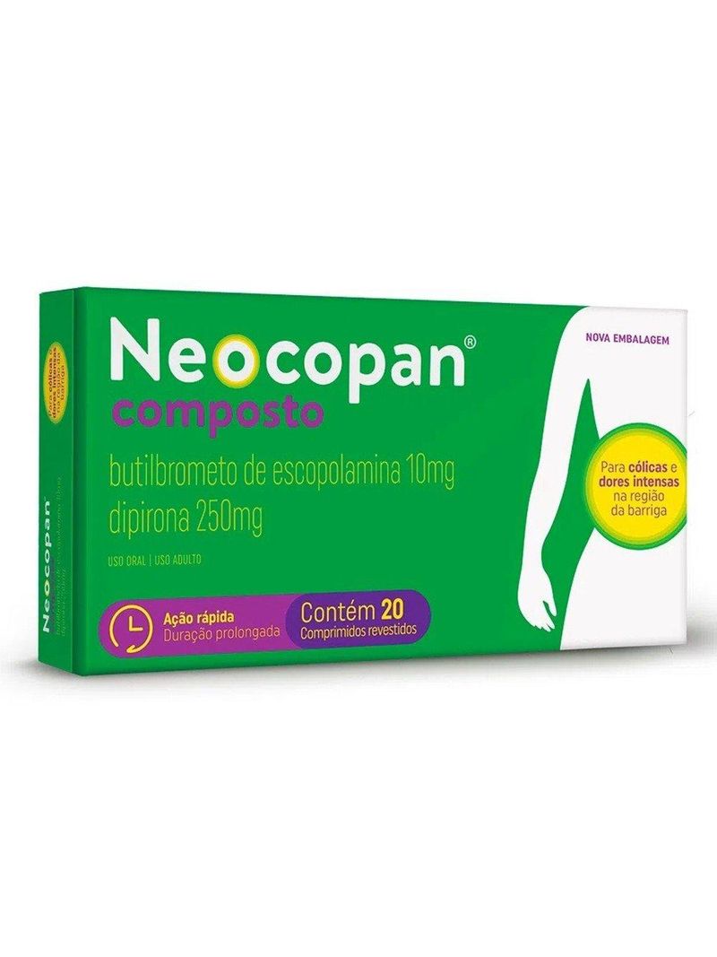 Você não deve usar Neocopan Composto se tiver alergia a analgésicos semelhantes à dipirona, ao butilbrometo de escopolamina ou a algum outro componente do produto. Isso inclui reações graves como agranulocitose após o uso dessas substâncias. Também é contraindicado em casos de asma induzida por analgésicos, reações anafilactoides, broncoespasmo, comprometimento da medula óssea, deficiência genética da enzima glicose-6-fosfato-desidrogenase, porfiria hepática aguda intermitente, glaucoma, aumento da próstata com dificuldade para urinar, estreitamento gastrointestinal, íleo paralítico ou obstrutivo, megacólon, taquicardia, miastenia gravis, no terceiro trimestre de gravidez e durante a amamentação.
