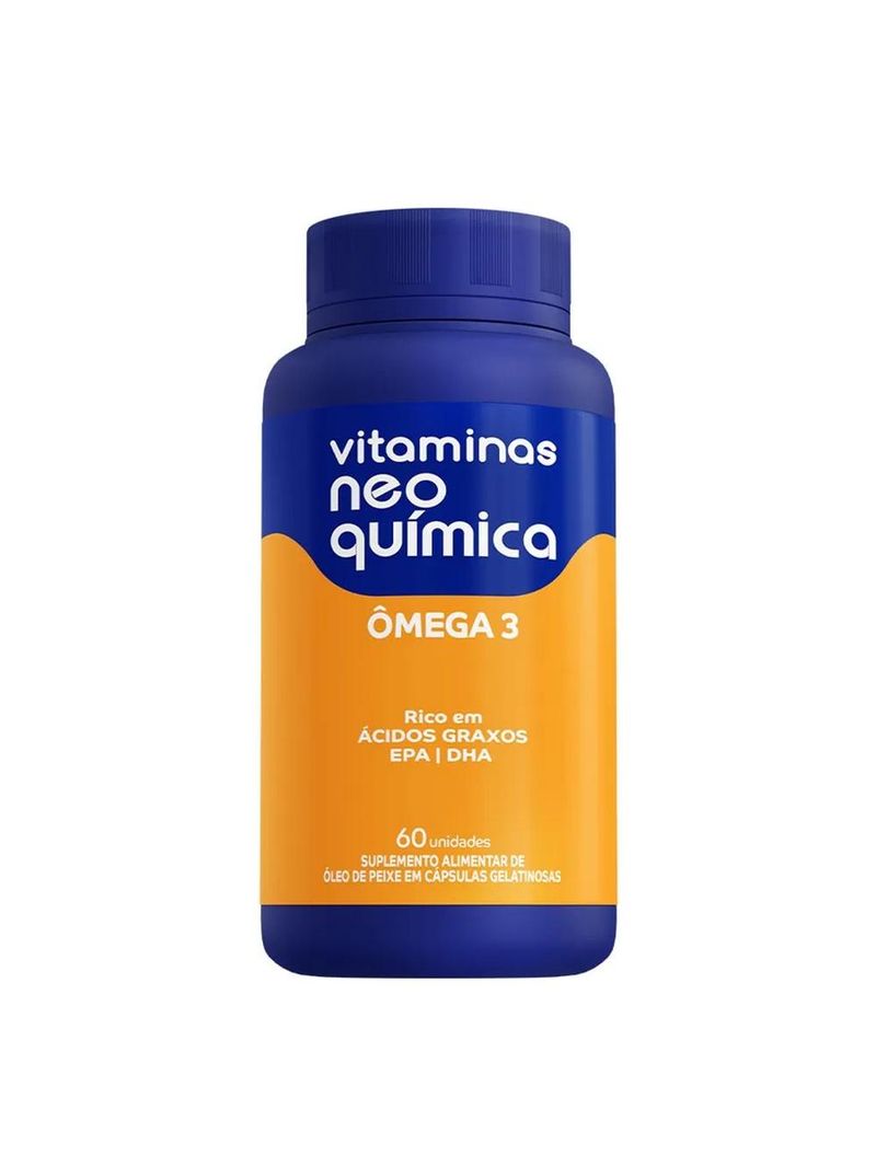 Vitaminas Neo Química Centrotabs Ômega 3 é um suplemento alimentar rico em ácidos graxos EPA DHA. Para auxiliar na na manutenção dos níveis saudáveis de triglicérides e auxilia a imunidade. Adultos, ingerir 1 cápsula, 3 vezes ao dia, antes das principais refeições ou ou conforme orientação de médico ou nutricionista.