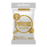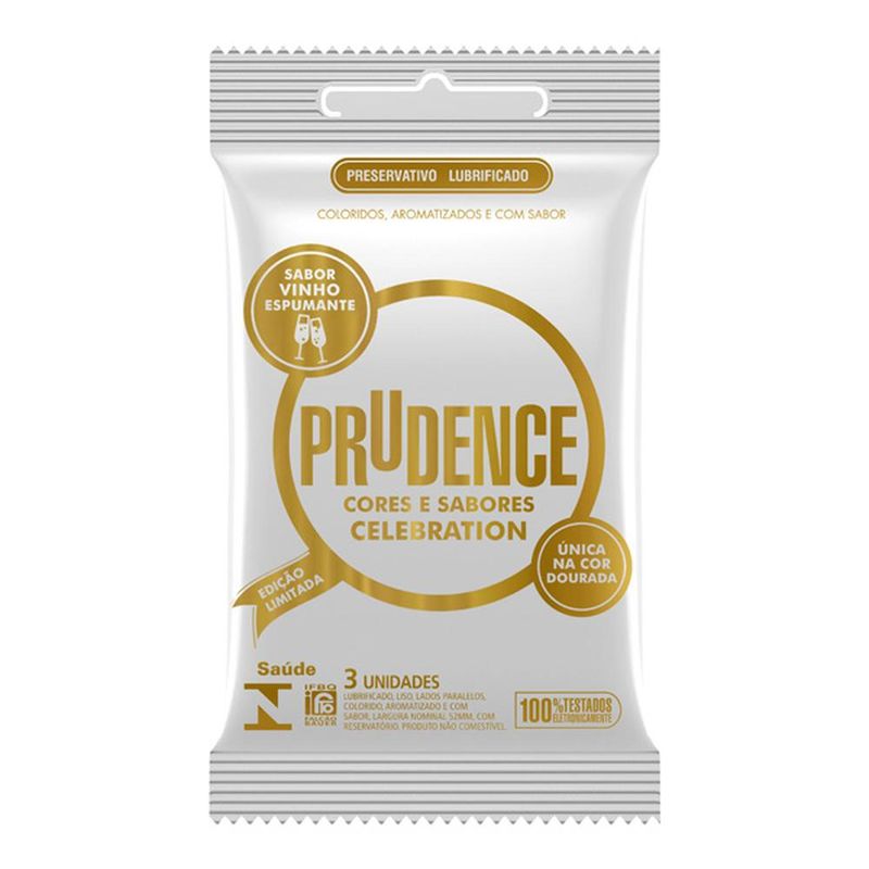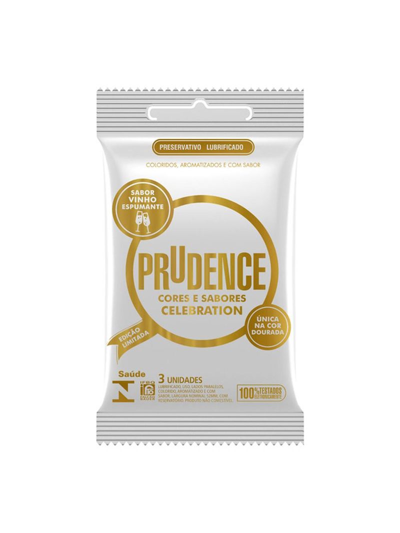 O preservativo prudence celebration é a única na cor dourada, com aroma e sabor de vinho espumante, para celebrar da melhor forma possível. Produto sem textura e com lados paralelos. Largura nominal de 52mm. Contém 3 unidades. Todos os preservativos prudence são fabricados com látex natural e lubrificados à base de silicone, além de serem 3x testados, garantindo proteção e segurança e suas relações.