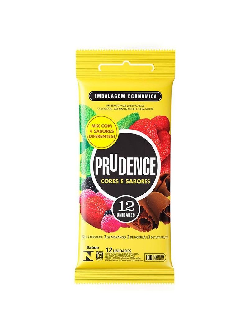 O Preservativo Prudence Mix C/12 vai te deixar com água na boca! A primeira linha de camisinhas com cor, aroma e sabor de verdade vai fazer sua noite ter um gostinho especial e um colorido diferente. Morango, Uva, Chocolate, Hortelã, Tutti-Frutti, Banana, Cola e Melancia, uma mais deliciosa que a outra! Prudence Cores e Sabores, o novo gosto do prazer. Embalagens com 3 unidades e sabores Morango, Hortelã, Uva e Melancia também em embalagens com 6 unidades. Prudence Cores e Sabores Mix com 12 camisinhas de cores e sabores sortidos.