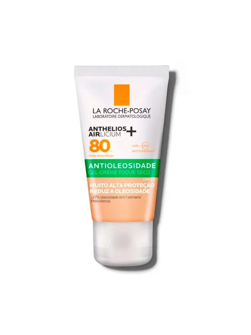 Protetor solar La Roche-Posay Anthelios Airlicium FPS80 Cor 2.0 com 40g Protetor solar facial com cor. La Roche-Posay Anthelios Airlicium FPS80 protege e oferece um tratamento que reduz a oleosidade em 27% em apenas uma semana e 56% em um mês. O Protetor Solar Facial La Roche-Posay Anthelios Airlicium FPS80 possui uma textura fluida, ultra leve, de rápida absorção, não pesa, não escorre, não craquela e não deixa uma aparência pegajosa. Além disso, confere alta proteção solar e contra pigmentação causada pela luz visível. O Protetor Solar Facial La Roche-Posay Anthelios Airlicium FPS80 está disponível em 5 cores para peles brasileiras, proporcionando uma cobertura uniforme. Indispensável para a sua rotina, trazendo uma sensação de pele limpa e fresca por até 12 horas 5 cores para peles brasileiras (1.0/2.0/3.0/5.0/6.0). Benefícios: Controle + Redução da oleosidade; -27% de oleosidade em 1 semana; 56% de oleosidade em 4 semanas; Proteção comprovada contra pigmentação causada pela luz visível; Controle imediato da oleosidade | Controla a oleosidade ao longo do dia; Textura gel creme leve com toque seco e rápida absorção; Filme protetor resistente mesmo em condições extremas, com textura que não pesa, não escorre e não craquela; Pele com cobertura uniforme ao longo do dia, sem transferência de cor; Alta proteção UVB/UVA (FPS 80 / PPD33). Como usar: Aplique abundantemente sobre a pele 30 minutos antes da exposição ao sol. Se a quantidade aplicada não for adequada, o nível de proteção será significativamente reduzido. É necessária a reaplicação do produto para manter a sua efetividade. Reaplique sempre, após sudorese intensa, nadar ou secar-se com a toalha e durante a exposição ao sol.
