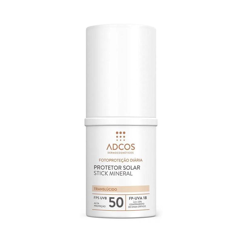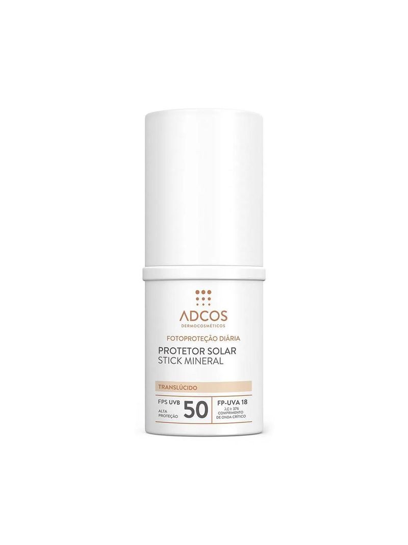 O que é e para que serve o protetor solar Adcos Stick Mineral Translúcido FPS 50? O Adcos Stick Mineral é um protetor solar facial em stick, 100% mineral, translúcido, com textura não oleosa, toque seco e acabamento mate. Com alta tolerância e segurança para todos os tipos de pele, inclusive sensíveis e com rosácea, seu uso hidrata profundamente, regenera e protege a barreira cutânea, sem deixar resíduo brancos. Como usar o Protetor Solar Adcos Stick Mineral Translúcido FPS 50? Aplique em todo o rosto após a higienização da pele e antes da exposição ao sol. Reaplique o produto a cada duas horas ou sempre que necessário para manter a sua eficácia. Advertências Uso externo. Não ingerir. Caso haja contato com os olhos, lave-os abundantemente. Se houver irritação, suspenda o uso imediatamente e procure orientação médica. Mantenha fora do alcance das crianças.