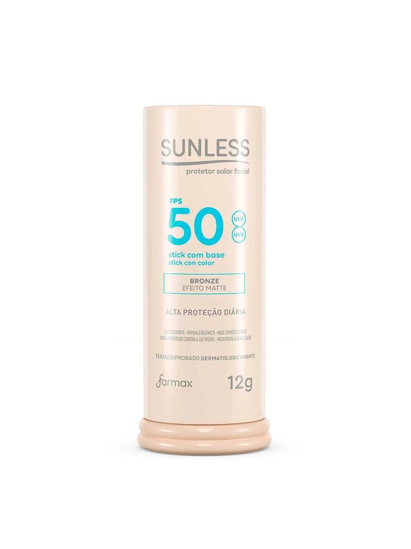 O que é o Sunless Stick? Sunless Stick é um protetor solar facial com base de alta cobertura de efeito matte que ajuda a tonalizar a pele e ainda contribui para disfarçar imperfeições e manchas. Hipoalergênico e não-comedogênico, este é um produto testado dermatologicamente para maior segurança na hora de aproveitar o sol. Tom da base Bronze. Para que serve o protetor solar Sunless Stick? Resistente à água e ao suor e com intensa proteção contra os raios UVA e UVB, o protetor solar stick da Sunless oferece ação antioxidante que ajuda a combater o envelhecimento precoce da pele, além de ajudar a proteger contra a luz visível. Benefícios e diferenciais do protetor solar facial Sunless Stick Protetor solar facial stick. Base de alta cobertura com efeito matte. Tonaliza a pele. Contribui para disfarçar imperfeições e manchas. Potente proteção contra os raios UVA e UVB. Ação antioxidante que ajuda a combater o envelhecimento precoce da pele. Ajuda a proteger contra a luz visível. Resistente à água e ao suor. Hipoalergênico e não-comedogênico. Testado dermatologicamente. Recomendações de uso É recomendável usar o protetor aproximadamente 30 minutos antes da exposição solar. Faça movimentos uniformes e suaves para espalhar o produto, certificando-se de que todas as áreas receberam cobertura. Reaplique o protetor a cada duas horas ao molhar a pele, suar ou quando desejar. Ingredientes Triglicerídeo caprílico/cáprico, álcool oleílico, octinoxato, butil-hidroxitolueno, fenoxietanol, octocrileno, hexil benzoato de dietilamino hidroxibenzoíla, acetato de tocoferila, dióxido de titânio, óxido de zinco, cera de candelila, cera microcristalina, náilon-12, talco, corante óxido de ferro amarelo, corante óxido de ferro vermelho, corante óxido de ferro preto, corante dióxido de titânio. A lista de ingredientes usados na composição pode ser alterada pelo fabricante. Desta forma, recomendamos que você sempre leia a lista de ingredientes na embalagem do produto para garantir que são adequados para seu uso. Advertências Uso adulto. Proteger da luz solar direta e do calor excessivo. Em caso de contato direto com os olhos, enxágue com água em abundância. Em caso de irritação da pele, suspenda o uso e procure orientação médica. Se a quantidade aplicada não for adequada, o nível de proteção será significativamente reduzido. É necessária a reaplicação do produto para manter a sua efetividade. Ajuda a prevenir as queimaduras solares. Este produto não oferece nenhuma proteção contra insolação. Evite exposição prolongada das crianças ao sol. Em contato com tecido pode causar manchas. Este produto foi formulado de maneira a minimizar possível surgimento de alergia. Mantenha fora do alcance das crianças e animais.