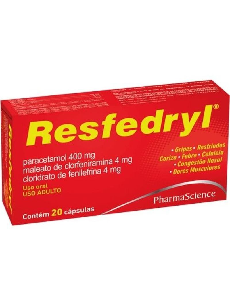 MedicamentosAlergia e GripeGripe e ResfriadoResfedryl 400mg + 4mg + 4mg com 20 Cápsulas Gelatinosas Duras
