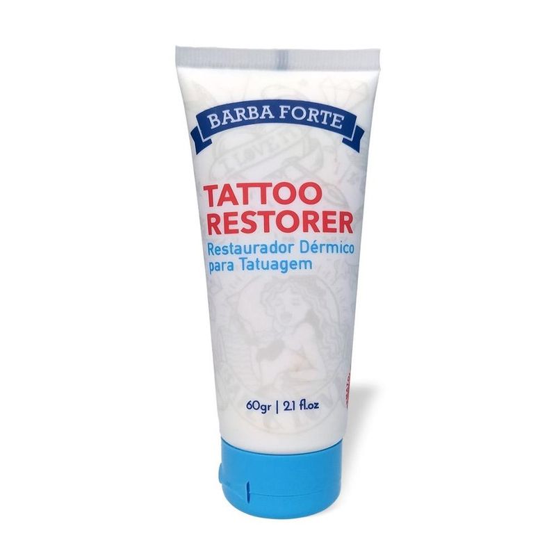 Tattoo restorer Barba Forte age como uma barreira protetora reduzindo risco de infecção e evitando a perda de água na pele mantendo-a macia e nutrida. contém ativos com proteção solar além ter ação refrescante, emoliente, estimulante, antisséptico e tonificante. contém: óleo de girassol, óleo de amêndoas, óleo de abacate e extrato de camomila. modo de uso:em tatuagem recente faça a higienização da tatuagem apenas com água e sabão deixando o local limpo e seco.
