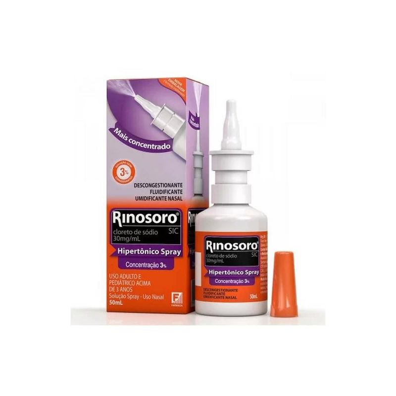 Rinosoro SIC é um medicamento com concentração hipertônica (3%) de cloreto de sódio, estéril e isento de conservantes. Tem como objetivo, auxiliar na remoção mecânica da secreção e das bactérias e também na fluidez do muco, descongestionando a via nasal, aumentando, portanto, a permeabilidade da via respiratória. Não é absorvido pela mucosa nasal. Assim é útil em situações onde haja congestão nasal como por exemplo, rinite alérgica, rinossinusite, gotejamento pós-nasal e em cirurugias rinossinusais. Por não conter conservantes ou substância vasoconstritora (substância que contrai os vasos sanguíneos nasais dificultando a liberação de muco), seu uso não sofre restrições, pois não há riscos de intoxicações ou de rinites provocadas por substâncias contidas nos medicamentos.