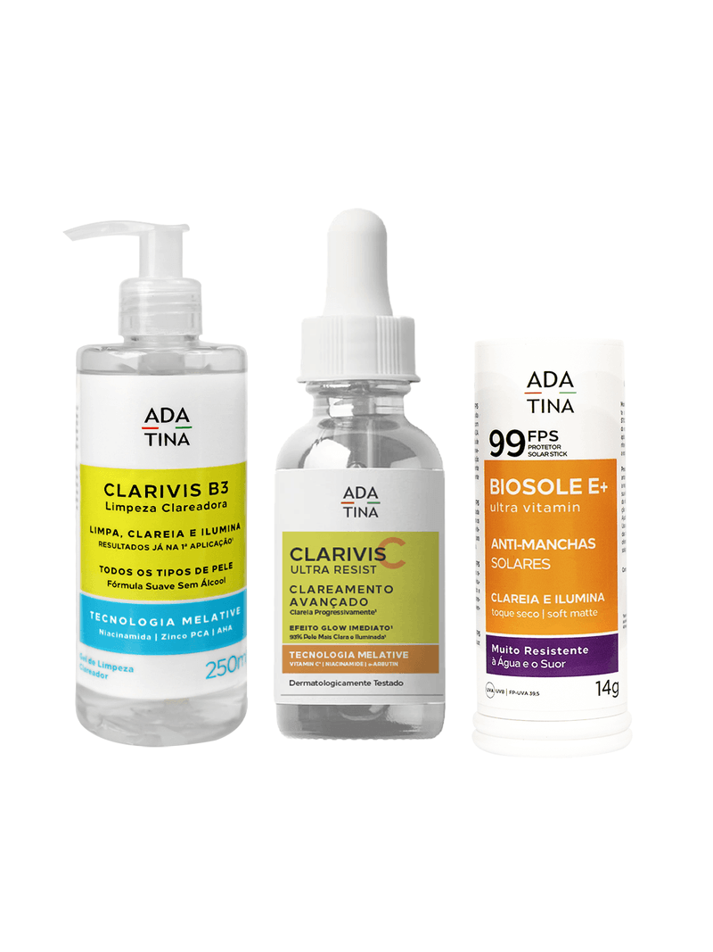 Clarivis C Ultra Resist é um sérum clareador avançado com Vitamina C, Niacinamida e a-Arbutin, desenvolvido para ajudar a melhorar a aparência de manchas persistentes, como as causadas pelo sol, acne, melasma e sinais de envelhecimento. Sua combinação eficaz de ingredientes ajuda a clarear a pele, promovendo um tom mais uniforme, iluminado e radiante. Além de melhorar a aparência de manchas, Clarivis C Ultra Resist proporciona um efeito glow imediato, promovendo uma pele visivelmente mais equilibrada.PRIMEIRO BASTÃO CLAREADOR FPS 99 12HS
