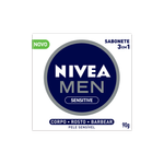Você sempre pronto. NIVEA MEN Sensitive Sabonete 3 Em 1. Limpeza diária e um barbear rente e confortável para mais praticidade para seu dia a dia. Sua fórmula possui tecnologia ACTIVE COMFORT SYSTEM* desenvolvida especialmente para a pele do homem e também para a pele sensível. Sua fórmula com Vitamina E, Hamamelis e extrato de Camomila acalma e ajuda a proteger a pele, previnindo irrtações causadas pelo barbear. Dermatologicamente testado.
