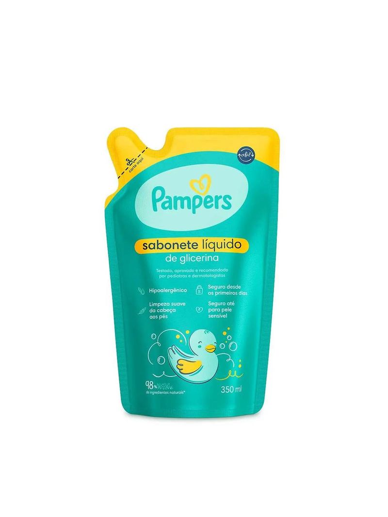 O que é o sabonete líquido Pampers Glicerina?O sabonete líquido Pampers Glicerina foi criado pensando em um banho suave e seguro, com uma composição com 98% de ingredientes naturais, sem álcool etílico, fenoxietanol, parabenos e corantes.Testado, aprovado e recomendado por pediatras e dermatologistas, Pampers Glicerina é hipoalergênico, possui pH ideal para a pele do bebê e uma fórmula biodegradável, vegana e livre de crueldade animal.Para que serve o sabonete líquido Pampers Glicerina?Seguro desde os primeiros dias, até para a pele sensível, o sabonete líquido Pampers Glicerina traz maior suavidade e mantém a pele do seu neném macia, garantindo limpeza suave da cabeça aos pés, sem lágrimas e com uma perfumação suave, segura para recém-nascidos.Benefícios e diferenciais do sabonete líquido Pampers GlicerinaCriado pensando em um banho suave e seguro.Composição sem álcool etílico, fenoxietanol, parabenos e corantes.Traz maior suavidade e mantém a pele do seu neném macia.Testado, aprovado e recomendado por pediatras e dermatologistas.Seguro até para a pele sensível.Seguro desde os primeiros dias.Limpeza suave da cabeça aos pés.Hipoalergênico.98% de ingredientes naturais.Sem lágrimas.Possui pH ideal para a pele do bebêPerfumação suave, segura para recém-nascidosFórmula biodegradável, vegana e livre de crueldade animal.Como usar o sabonete líquido Pampers Glicerina?Coloque um pouco do sabonete líquido em uma das mãos.Espalhe por todo o corpinho e cabelinhos molhados do seu bebê durante o banho.Massageie suavemente.Enxágue em seguida com água.AdvertênciasEste produto foi formulado de maneira a minimizar possível surgimento de alergia.Deve ser aplicado por adulto ou sob sua supervisão.Não usar na pele irritada ou lesionada.Não usar se o couro cabeludo estiver ferido ou irritado.Em caso de irritação, suspender o uso e procurar um médico.Caso o produto entre em contato com os olhos, lavar com água corrente em abundância e procurar um médico.