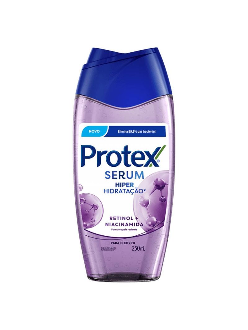 O que é e para que serve o sabonete Líquido Corporal Protex Sérum Hiper hidratação Retinol + Niacinamida? O Protex Sérum Hiper Hidratação é um sabonete líquido corporal, formulado com um sistema exclusivo de alta tecnologia com Retinol + Niacinamida. Seu uso, além de oferecer uma hidratação profunda, elimina 99.9% das bactérias. O resultado é uma pele macia, protegida e radiante. Como usar o Sabonete Líquido Corporal Protex Sérum Hiper Hidratação Retinol + Niacinamida? Aplique um pouco de sabonete líquido corporal Protex em suas mãos ou em uma esponja. Depois ensaboe o corpo e aproveite sua fragrância refrescante e limpa. Para finalizar, enxágue e sinta a hidratação de sua pele. Caso deseje, repita o processo e aproveite sua textura suave. Composição Aqua, Lauriletersulfato de Sodio, Glicerol, Cocoamidopropilbetaina, Acido Láctico, Crospolimero-4 de Acrilatos, Perfume, MEA de Cocamida, Maleato de Castorila,Hidróxido de Sódio, Edetato de Sódio, Benzoato de Sódio, Poliquatérnio-7, Sulisobenzona, Niacinamide/Nicotinamida, Poloxamer 124/Poloxaleng, Óleo da Semente de Linum Usitatissimum, CI 17200/Vermelho 3, Retinol, Cl 42090/Azul Brilhante, Hexil Cinamal, Linalol, Limoneno. A lista de ingredientes usados na composição pode ser alterada pelo fabricante. Desta forma, recomendamos que você sempre leia a lista de ingredientes na embalagem do produto para garantir que são adequados para seu uso. Advertências Uso externo. Não ingerir. Caso haja contato com os olhos, lave-os abundantemente. Se houver irritação, suspenda o uso imediatamente e procure orientação médica. Mantenha fora do alcance das crianças.
